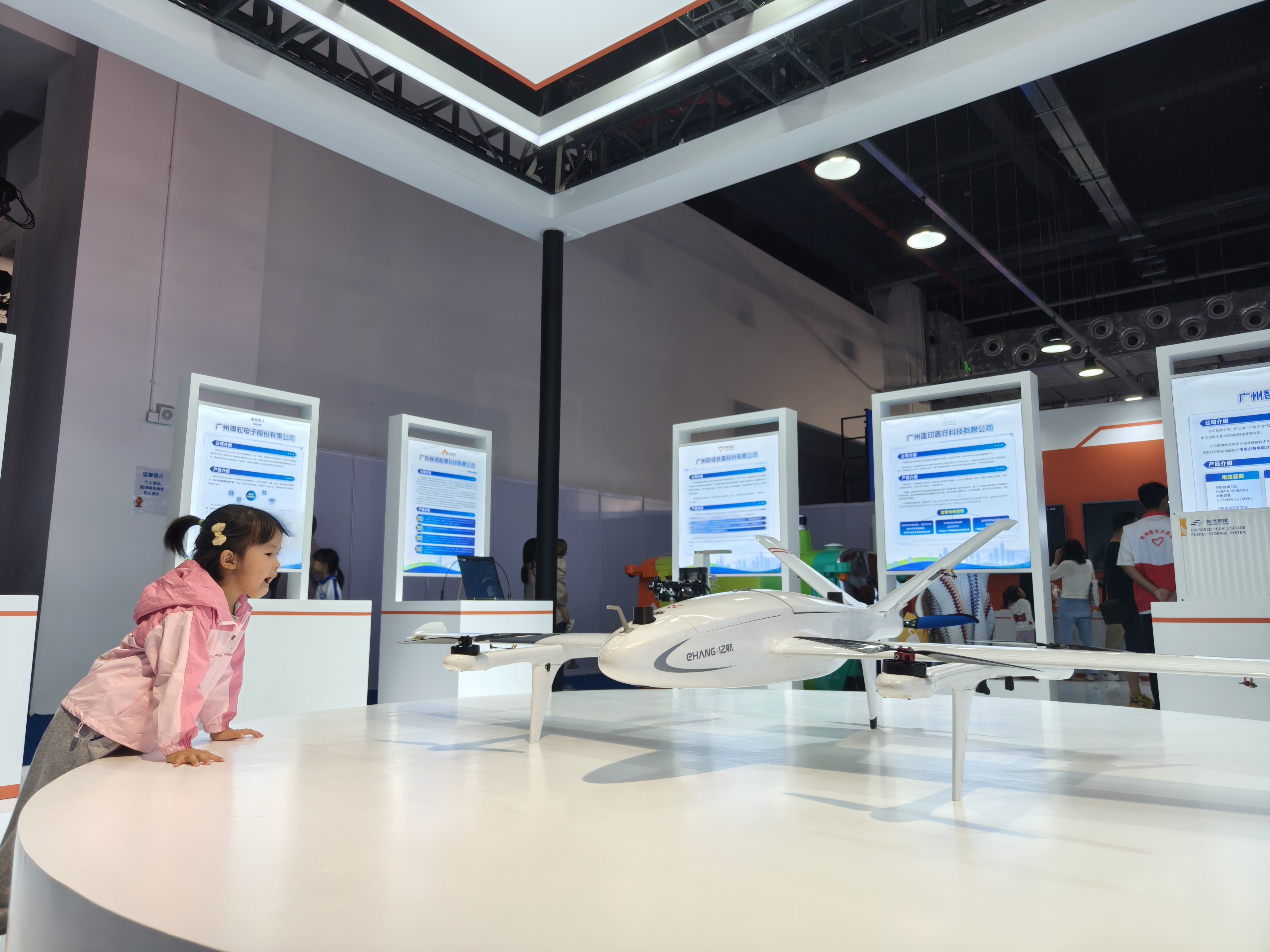 广州亿航智能技术有限公司(下称亿航智能)也带着“黑科技”亮相展会。“这款亿航VT-11E纯电动垂直起降固定翼无人机具备‘多载荷、长航时、易操控’的特性。”亿航智能相关负责人介绍,这款产品通过免工具组装设计,大幅降低了应用门槛,可精准适配测量、救灾等多种适用场景,机身仅8千克却能够实现复杂环境下的高效作业。