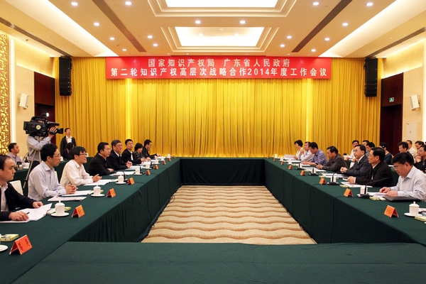 申长雨、朱小丹出席了2014年度工作会议并讲话。申长雨指出,工作会议议定了2014年战略合作工作安排,这是双方从国家知识产权事业发展全局和广东省的实际需求出发,作出的共同决定,必将有力地推动广东知识产权工作上水平、上台阶。