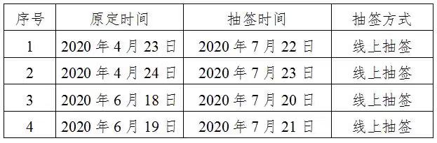 受新冠肺炎疫情影响,国家知识产权局商标局决定延期举行商标注册同日申请抽签,并将抽签方式由线下抽签变更为线上抽签,具体时间安排如下: