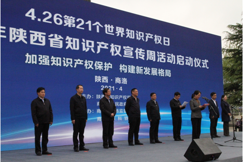 4月20日,2021年陕西省知识产权宣传周活动启动仪式在商洛市举行,正式拉开了宣传周活动序幕。陕西省知识产权局党组书记、局长侯社教、商洛市市人大常委会副主任杨长洲、商洛市市人民政府副市长权雅宁等领导参加启动仪式。省知识产权局党组成员、副局长李迎波主持仪式。
