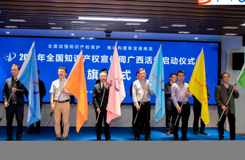 4月20日,全国知识产权宣传周广西活动启动仪式在南宁举行,自治区副主席李彬等领导为广西知识产权维权援助公益行服务队专家代表授旗,拉开了广西知识产权维权援助公益行活动帷幕。