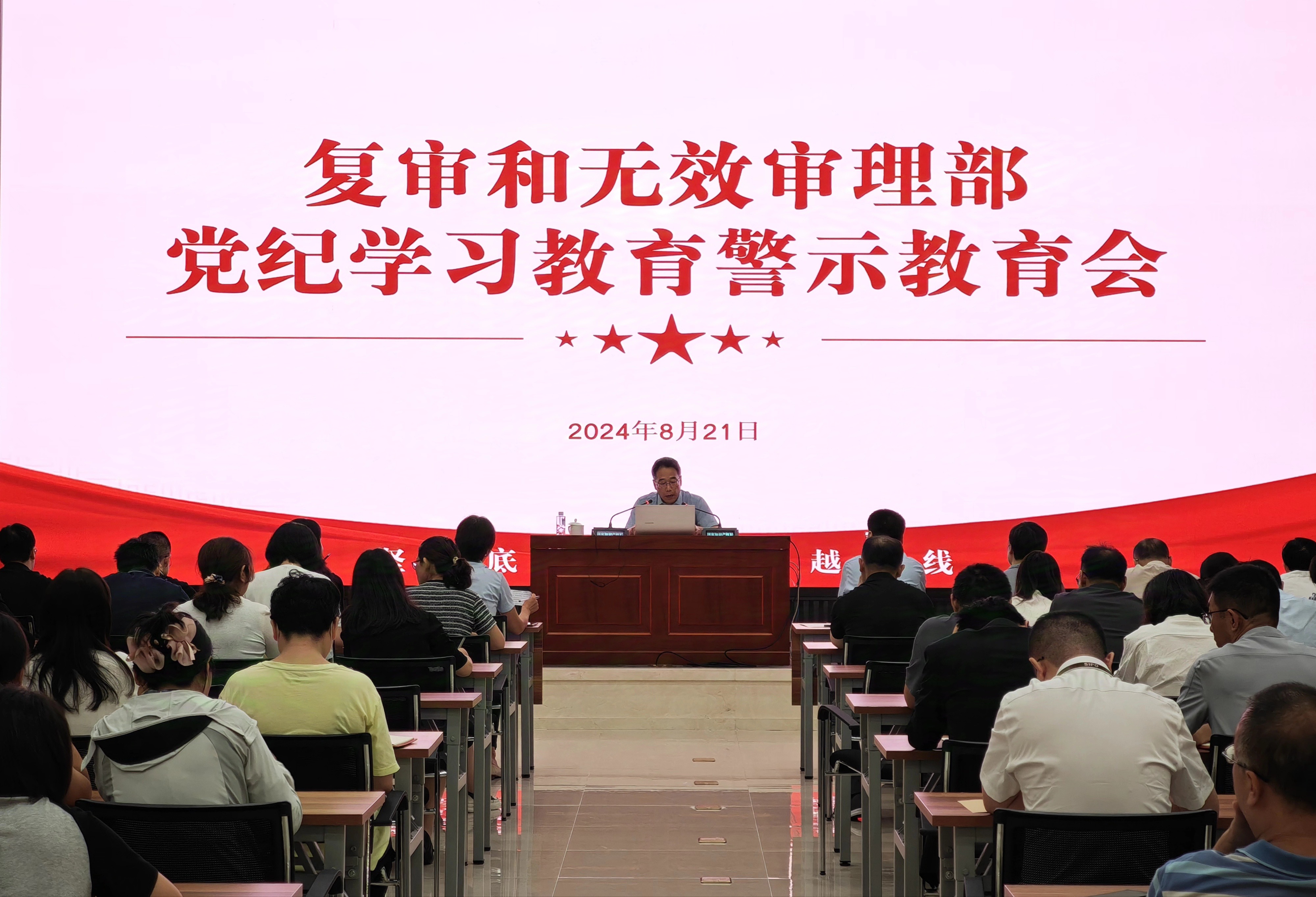 近日,复审无效部召开党纪学习教育警示教育会,传达学习局党纪学习教育警示教育会精神,部门全体干部职工参加。