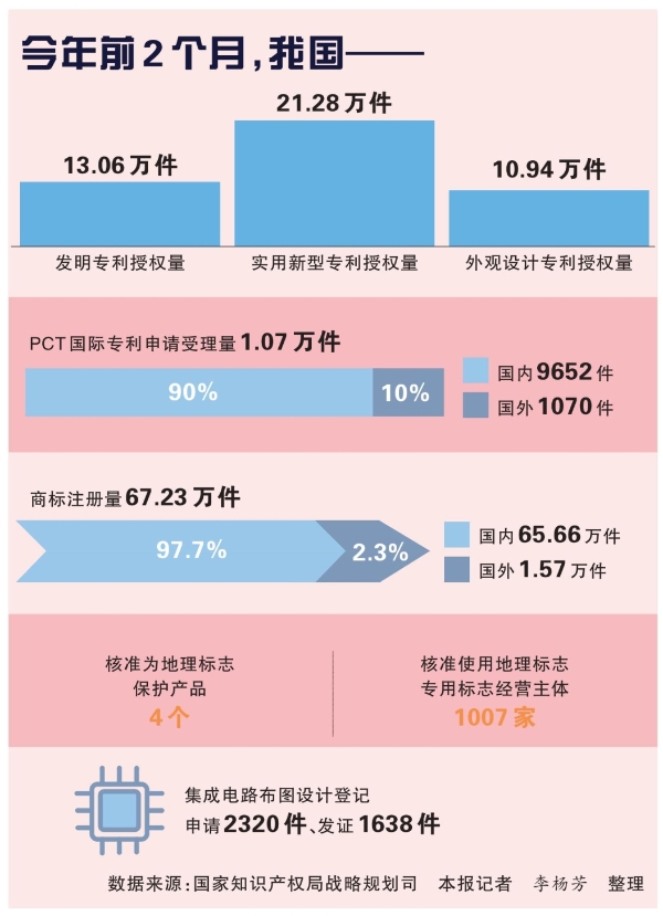 一图速览今年前2个月我国知识产权统计数据(知识产权报)
