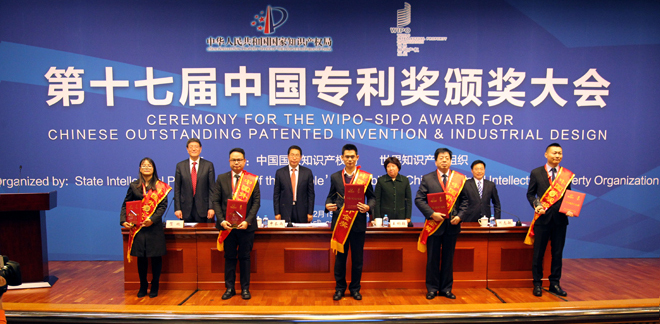 [国家知识产权局局长 申长雨] 尊敬的世界知识产权组织副总干事王彬颖女士,各位来宾,同志们,朋友们:今天,我们在这里隆重召开第十七届中国专利奖颁奖大会,表彰对积极有效开展知识产权创造、运用、保护和管理工作,为促进创新和加快经济社会发展做出突出贡献的专利权人、发明人和设计人。在此,我谨代表国家知识产权局,向荣获第十七届中国专利奖的单位和个人表示致敬和热烈的祝贺,向出席本次大会的各位领导和嘉宾表示热烈的欢迎,向所有关心和支持中国知识产权事业发展的社会各界表示衷心的感谢!