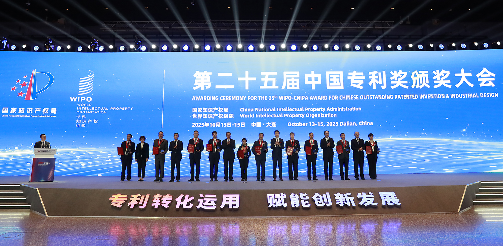 [陈绍旺] 下面,进行第二十五届中国专利金奖项目颁奖仪式。请申长雨先生、邓鸿森先生、熊茂平先生、王利波先生、王彬颖女士、卢鹏起先生移步主席台,为获奖单位颁奖。