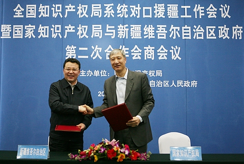根据国家知识产权局援疆工作协议,国家知识产权局将从成立“东中西部知识产权合作与对口援疆工作领导小组”,大力推进知识产权战略在新疆的深入实施,进一步加大对新疆知识产权工作的支持力度,大力提升新疆企事业单位知识产权创造、运用、保护、管理能力和水平,推进新疆在对外开放中的知识产权保护与合作,大力加强知识产权人才培养工作等6个方面加大对新疆知识产权事业发展支持力度。